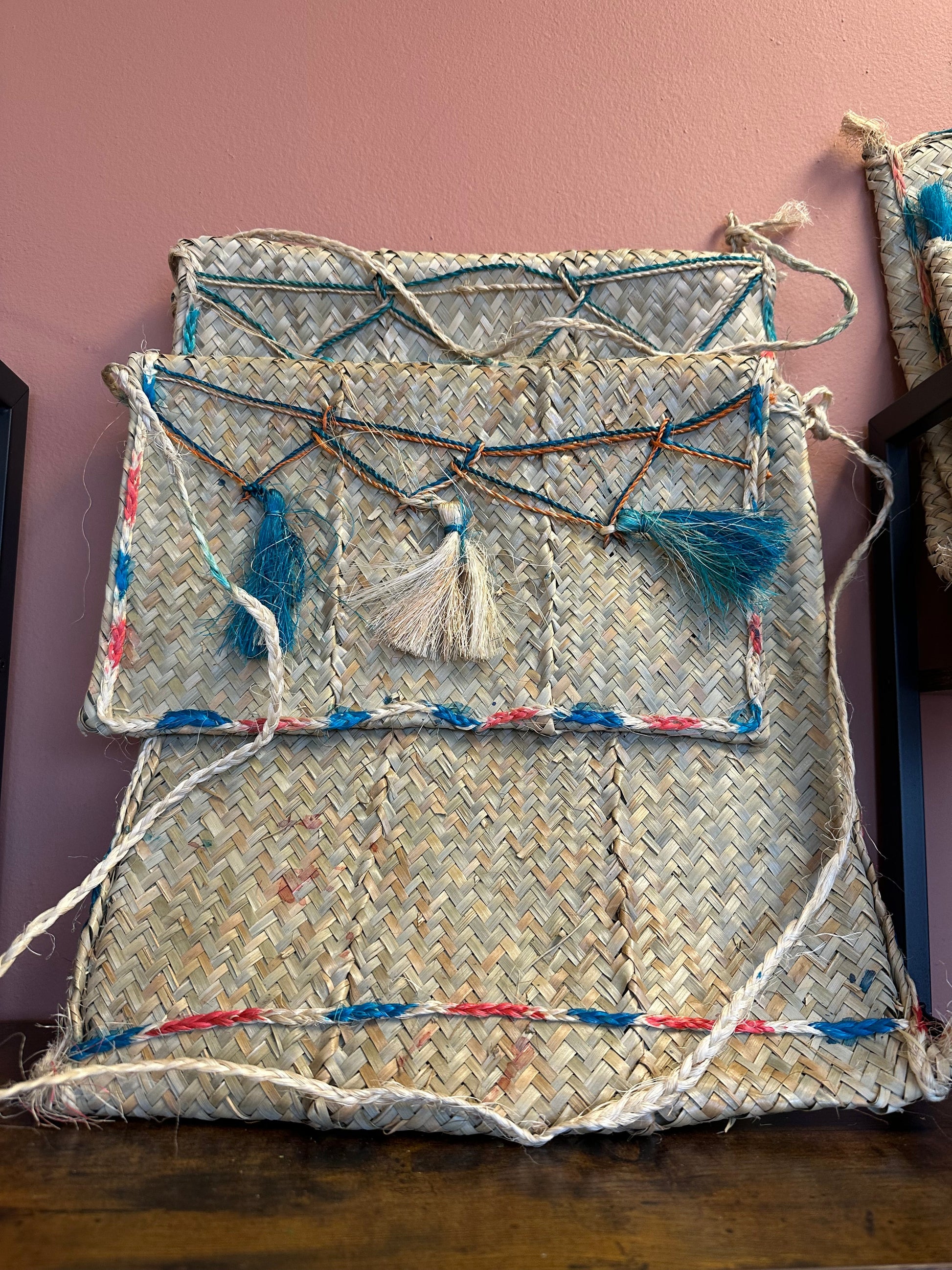 Straw devotional bag for Kouzen and his eskot. Imported from Haiti.